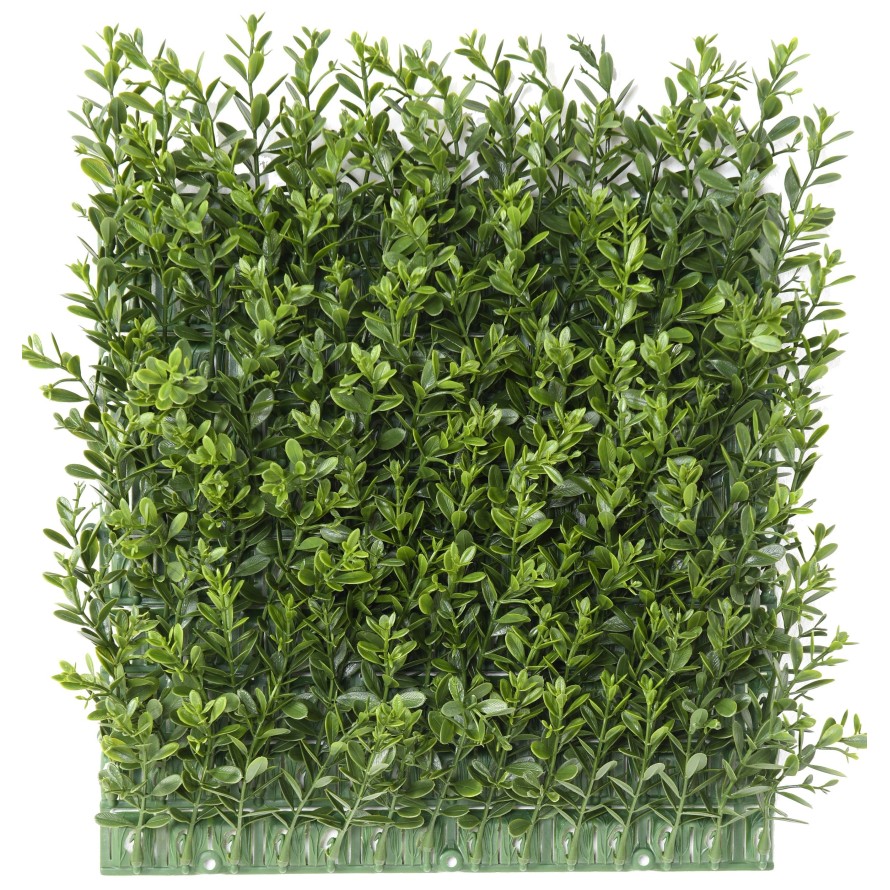Artificial BOXWOOD RED DAY WALL PANEL UV, consisting of a solid PE base measuring 26 cm x 26 cm. Suitable for outdoor use. UV resistance guarantee: 2000 hours (hours of sunlight), i.e. approximately 2 years.