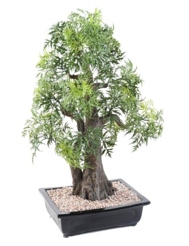 Künstliche Bonsais sind künstliche Bäume in Miniaturausführung, die wie ihre natürlichen Gegenstücke in Töpfen präsentiert werden. Es gibt mehrere Baumarten, die sich für die Bonsaikultur eignen. Unsere Auswahl berücksichtigt diese Vielfalt und wir bieten Ihnen sehr realistische Nachbildungen von Sorten wie künstlichen Aralia-Bonsai (Ahorn), künstlichen Bambus-Bonsai, künstlichen Willow-Bonsai, künstlichen Ficus-Bonsai, künstlichen Ulmen-Bonsai, künstlichen Podocarpus-Bonsai und künstlichen Pinien-Bonsai. Auf einem Couchtisch oder im Zen-Garten zieht der künstliche Bonsai die Blicke der Kenner auf sich.