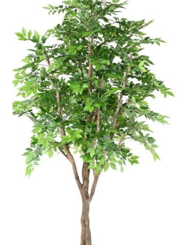 Mit einer Höhe von 2,95 m, einem realistischen Stamm aus Fiberglas und UV-beständigem Polyethylen-Blattwerk bildet er ein dichtes und zugleich lichtdurchflutetes Gesamtbild.