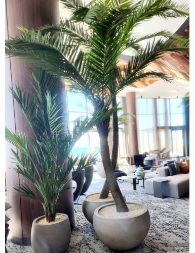 OLIVENBAUM GIANT KRONE 2T 350 Künstlich, mit einer lichten Höhe von 170cm und einem Hauptstamm mit einem Durchmesser von 16cm. Besteht aus 3 ineinandergreifenden Zweigen aus Naturholz. Die Basis ist ein quadratischer Holztopf von 26x26cm und einer Höhe von 21cm.