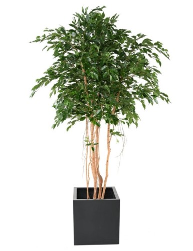 LYRATA MULTI GF Künstlich, mit einer Spannweite von 110cm und 74 Blättern, Basis Topf mit einem Durchmesser von 19cm und einer Höhe von 17,5cm. Der Stamm ist aus Naturholz und hat 4 Stiel.
