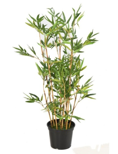 BAMBUS TV, 90cm hoher künstlicher Baum mit 9 grünen Halmen. Der Basistopf besteht aus PVC mit einem Durchmesser von 17cm und einer Höhe von 14cm.