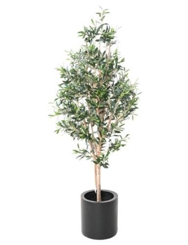 OLIVENBAUM 2T 200 Künstlich, bestehend aus einem Hauptstamm mit einem Durchmesser von 8 bis 10cm, die lichte Höhe beträgt 110cm. An der Basis befindet sich ein PVC-Topf mit einem Durchmesser von 16,5cm und einer Höhe von 15cm.