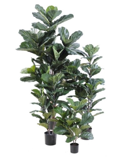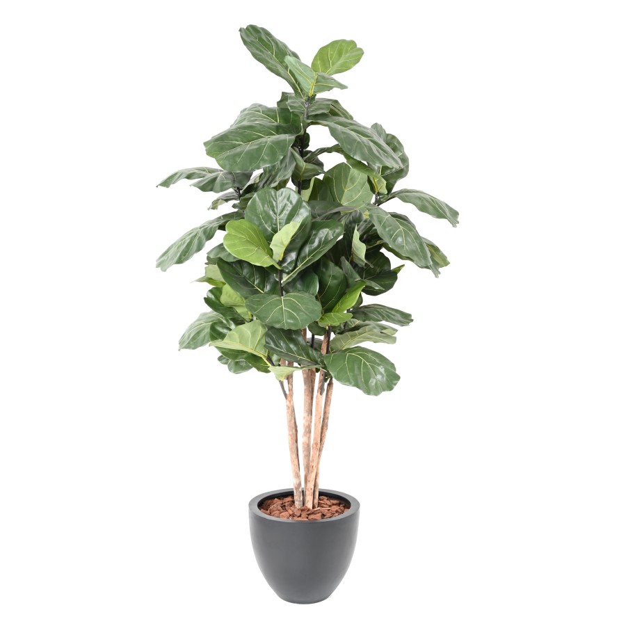 LYRATA STEM Green artificial tree, 190 cm high and 110 cm wide, with a natural wooden trunk and 6 stems. The base is a PVC pot with a diameter of 16.5 cm and a height of 15 cm.