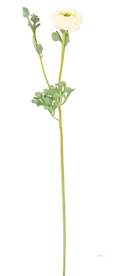 Artificial buttercup stem with open flower and velvety-touch foliage. This decorative flower is ideal for a soliflore or for use in bouquets and floral arrangements. For example, combine buttercups 68 with buttercups 55, which have more closed flowers, to create a more diverse, natural bouquet.