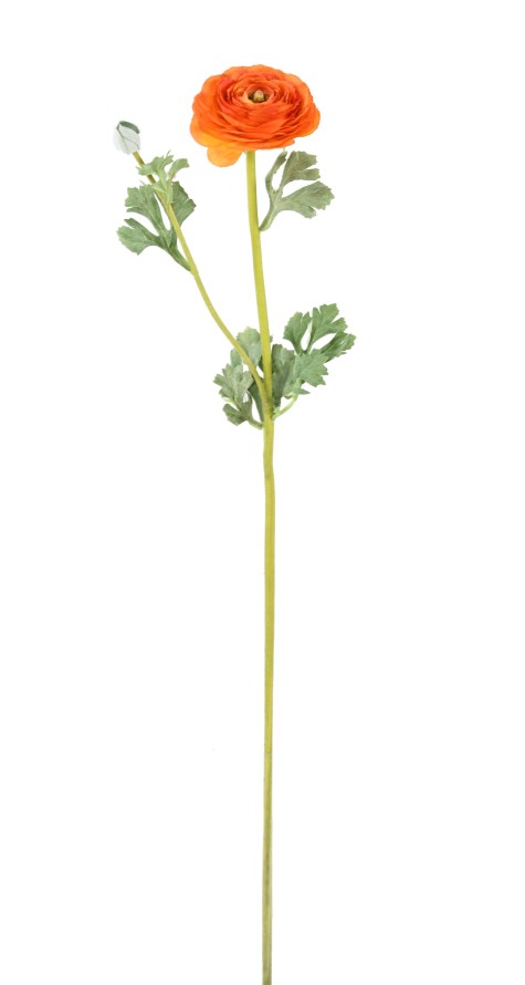 Artificial buttercup stem with open flower and velvety-touch foliage. This decorative flower is ideal for a soliflore or for use in bouquets and floral arrangements. For example, combine buttercups 68 with buttercups 55, which have more closed flowers, to create a more diverse, natural bouquet.