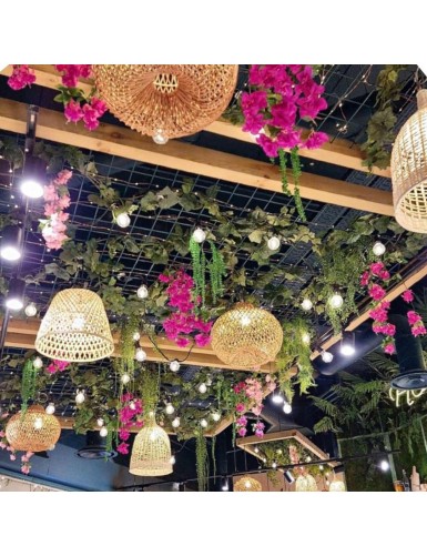 Here's a magnificent artificial bougainvillea branch in the form of a 130 cm garland. The vine parts imitate dark-green wooden twigs. The foliage features pink florets similar to real bougainvillea flowers. Designed to reproduce the natural beauty of bougainvillea, this garland is perfect for those wishing to add an elegant touch to their plant creation without the hassle of maintenance.