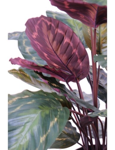 The Calathea artificial plant is an indoor plant with large, glossy leaves and elegant graphics thanks to its green and red foliage. With its flexible iron stems, this plant is easy to shape according to your preferences. Maintenance-free, it will remain by your side for many years.