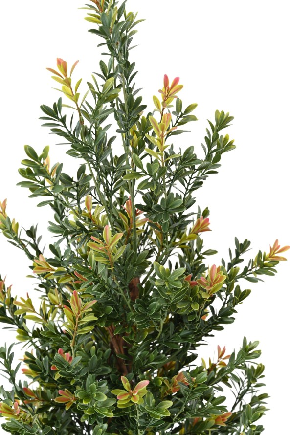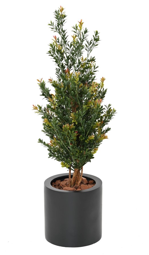 The heights of our red day box are now 100, 130 and 165 cm. The products are always UV and weather resistant. The foliage of this semi-natural tree is mainly green, with orange and red tones that give it depth.