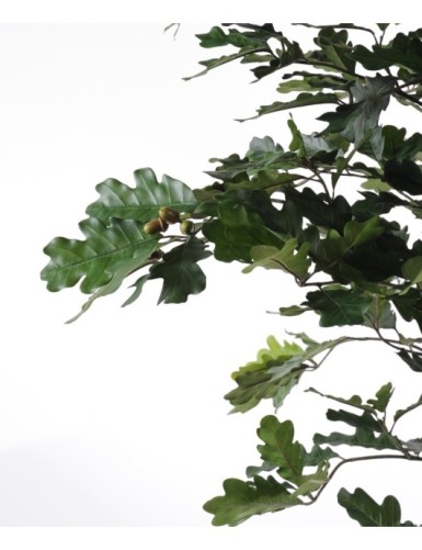 Roble artificial de 490 cm de altura, con tronco de fibra de vidrio de 30 cm de di ámetro. La altura debajo de la rama es de 200 cm, la base est á hecha de una pletina de 60 x 60 cm, el follaje est á hecho de tergal y este árbol artificial tiene una envergadura de 350 cm. El follaje correspondiente es el de roble rama*38 (ref. 5407-71).