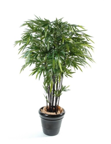 Bamb ú wild artificial, consta de 1104 hojas y un tronco de ca ñ a de bamb ú natural de 3,5 cm de di á metro. Altura bajo follaje de 95 cm. Base con maceta de PVC de 19 cm de di á metro y 18 cm de altura.