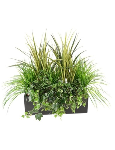 Bambú japoníés plást. seto denso resistente a los rayos UV en jardinera artificial, el seto de bambú japoníés plást. denso resistente a los rayos UV (ref.10813-UV71) viene montado en una jardinera de fibra negra de 100 x 20 x 20 (ref. fine1002020n). Este conjunto se puede realizar con una maceta diferente de nuestra gama y la superficie deseada, como musgo, corteza, esferas de arcilla o guijarros multicolores o blancos. Esta composición se realiza por encargo en nuestros talleres en Francia.