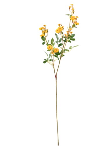 Su tallo armado de 36 cm sostiene 26 pequeñas flores de tergal en tonos rojos naturales y de aspecto delicado.