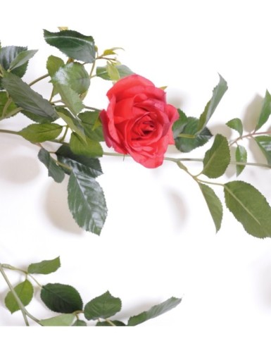 Rosa guirnalda real 140 artificial, consta de 3 capullos y 5 flores: dos de 7 cm de diámetro, dos de 9 cm y una de 10 cm. con tallos reforzados.