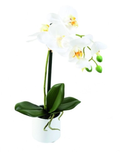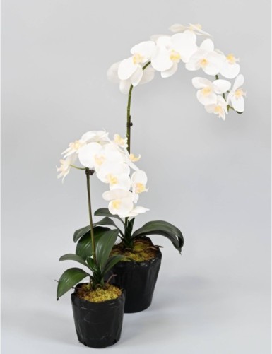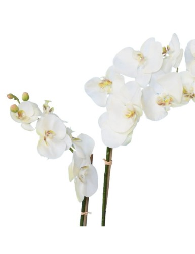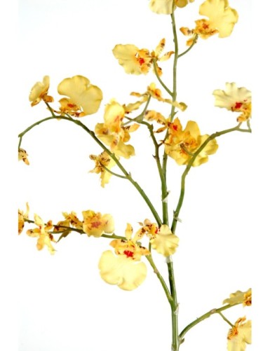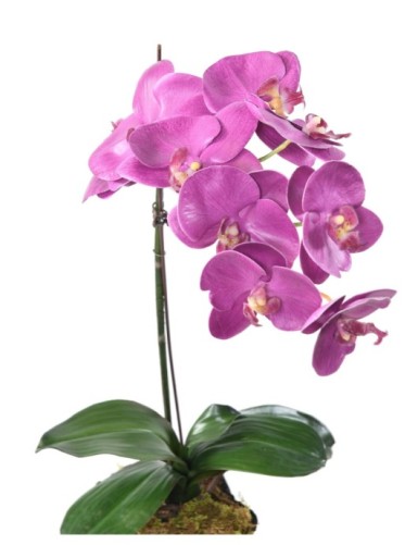Cymbidium planta 80 cm artificial, con cubremaceta flexible 20*15 cm, compuesta por un tallo con 7 flores y 2 capullos.