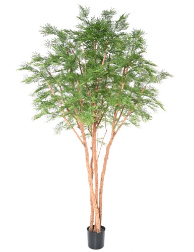 Bucida 450 artificial, consta de 54843 hojas, con una envergadura de 320 cm y una altura bajo follaje de 220 cm. Base con pletina de fibra de 45 x 45 cm. El tronco tiene un diámetro de 22 cm y una altura de 260 cm. hay 10 ramas para ensamblar en el tronco. El tronco principal es de fibra de vidrio y las ramas son de madera.