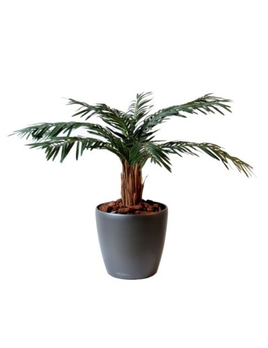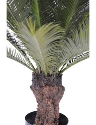 Cica tronco artificial, con maceta de PVC en la base de 18 cm de di ámetro y 15 cm de alto. tronco de fibra de vidrio con un di ámetro de 10 a 12 cm en su punto m ás ancho y follaje de PE .
