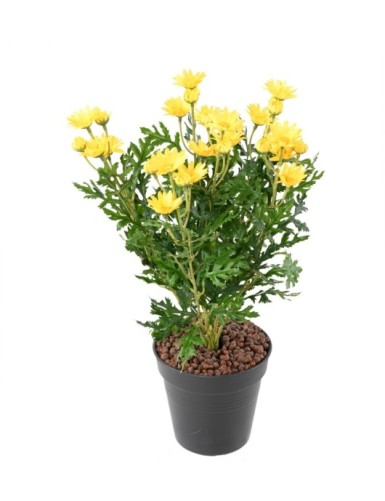 Rododendro 45 en maceta artificial, consta de 153 hojas y 6 flores, base con maceta de PVC de 11 cm de diámetro y 10 cm de altura.