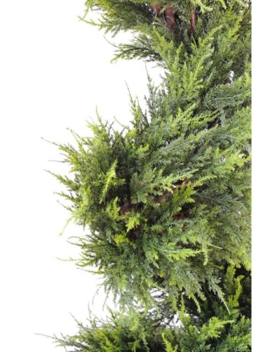 Cipríés mini new artificial, con una envergadura de 25 cm, base con maceta de 17 cm de diámetro y 15 cm de altura. Es necesario perforar la maceta original para permitir que el agua drene. Se debe fijar a la maceta decorativa creando un drenaje para evitar cualquier estancamiento de agua al pie de la planta. Apto para exterior. Garantí­a de resistencia a los rayos UV: 2000 horas (horas de luz solar) o aproximadamente 2 años.