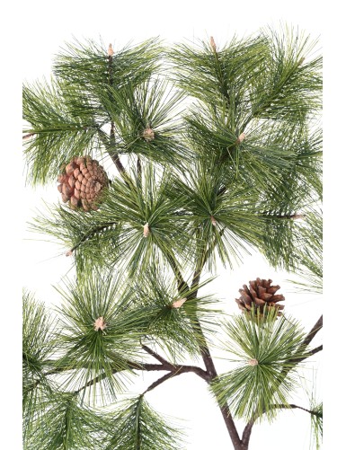 Rama artificial inspirada en el pino de Alepo, con follaje fino y verde y pequeños conos integrados. Ideal para enriquecer composiciones, jarrones o decoraciones temáticas.