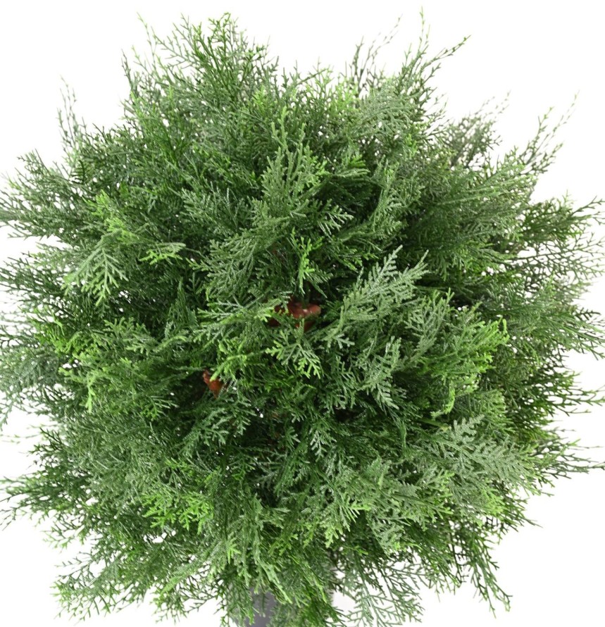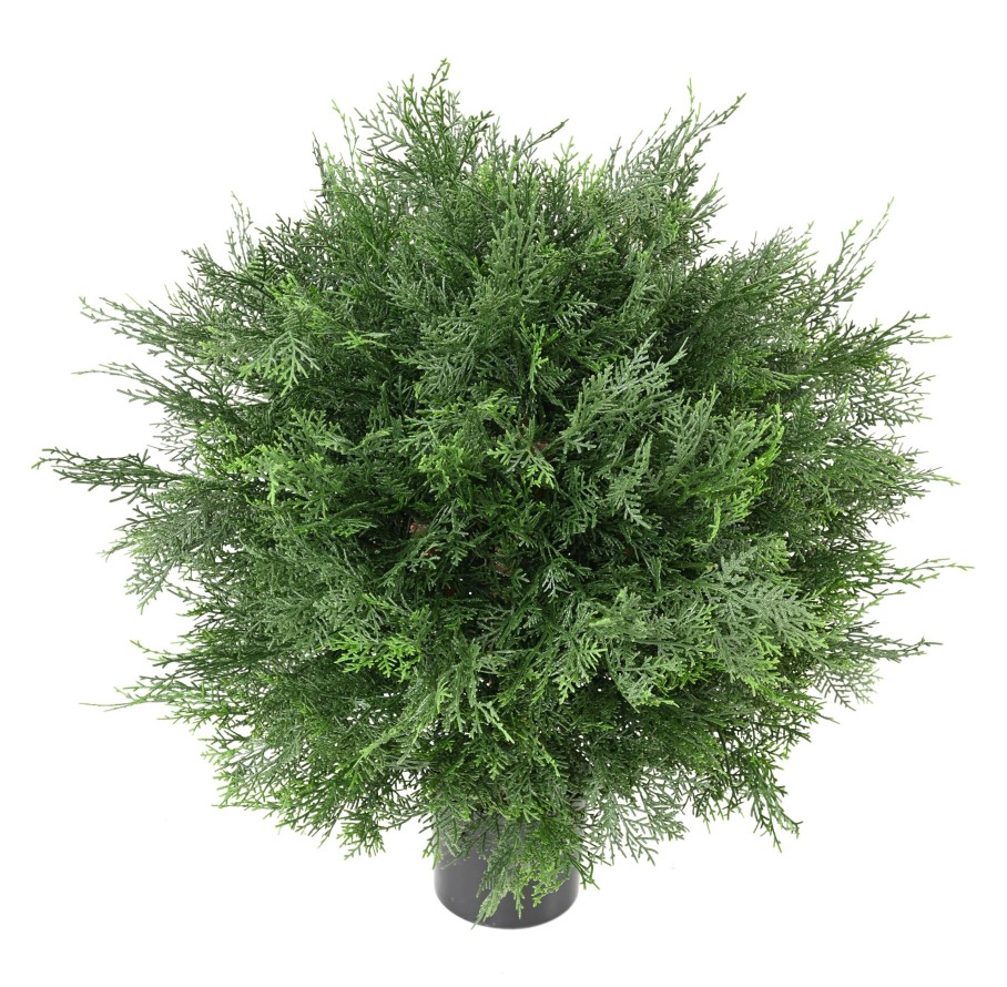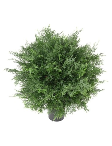 CYPRES DE LAWSON BOULE UV Artificiel, avec une hauteur sous feuillage de 17 cm, à la base un pot PVC de diamètre 11 cm et de hauteur 10 cm. Le pot d’origine doit être percé pour permettre à l’eau de s’évacuer. Il doit être fixé au bac décoratif en créant un drainage pour éviter toute stagnation de l’eau au pied de la plante. Convient pour l'extérieur. Garantie résistance aux UV : 2000 heures (heures d’ensoleillement) soit environ 2 ans.