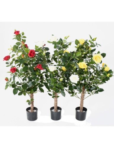 ROSIER ROYAL Artificiel, plante artificielle avec un pot de diamètre 12cm et une hauteur de 12cm, une tige armée, 8 fleurs et 8 boutons, les fleurs ont un diamètre de 9cm.