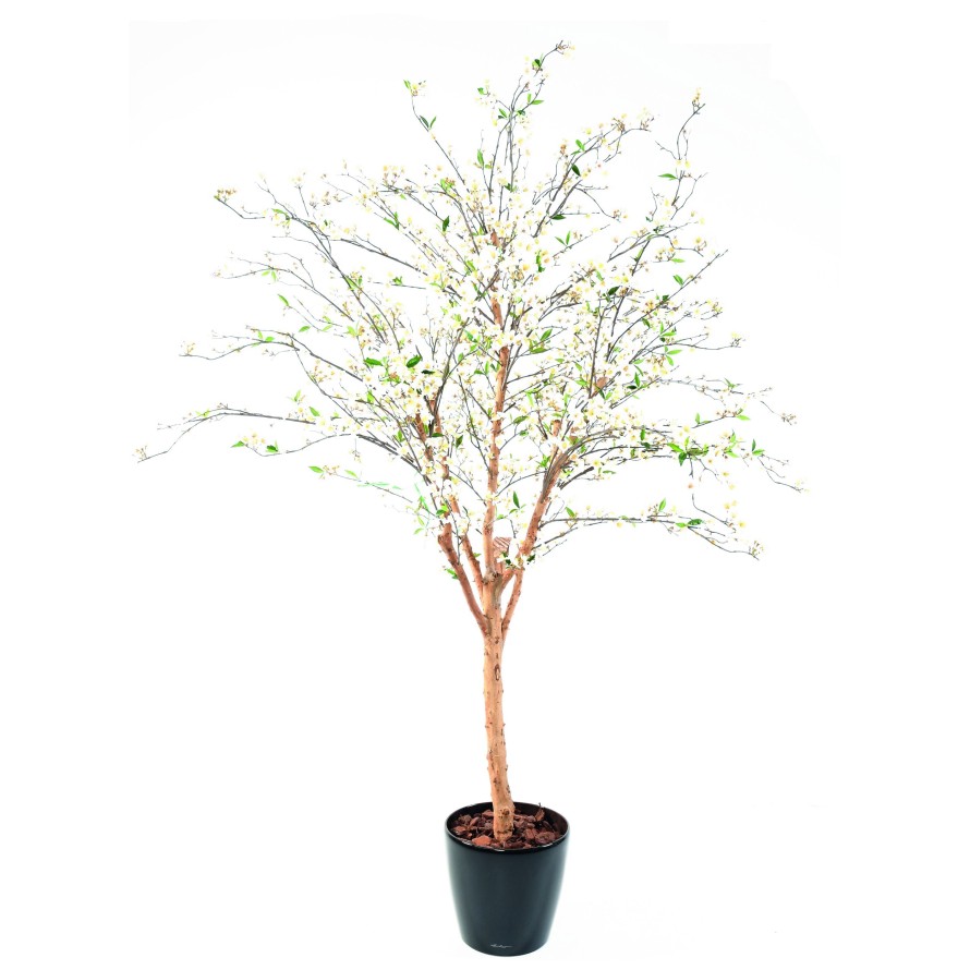 CERISIER FLEUR NEW Artificiel, avec une hauteur sous feuillage 100cm, Tronc de hauteur 52cm à partir de la première branche et diamètre 6cm, Pot de diamètre 19cm et hauteur 17cm, 5 branches à emboîter et à visser.