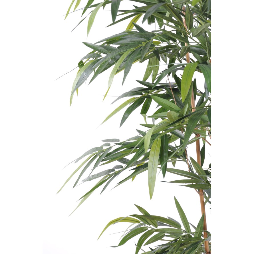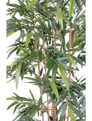 BAMBOU NEW Artificiel, composé de 6 cannes et 1216 feuilles, à la base un pot PVC de diamètre 14,5 cm et de hauteur 15 cm.