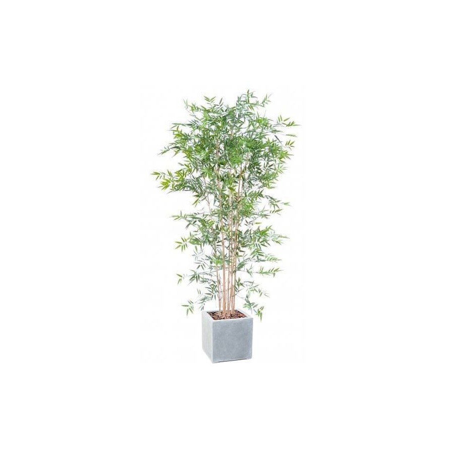 bambou japonais artificiel vert de 220 cm en pot carré gris