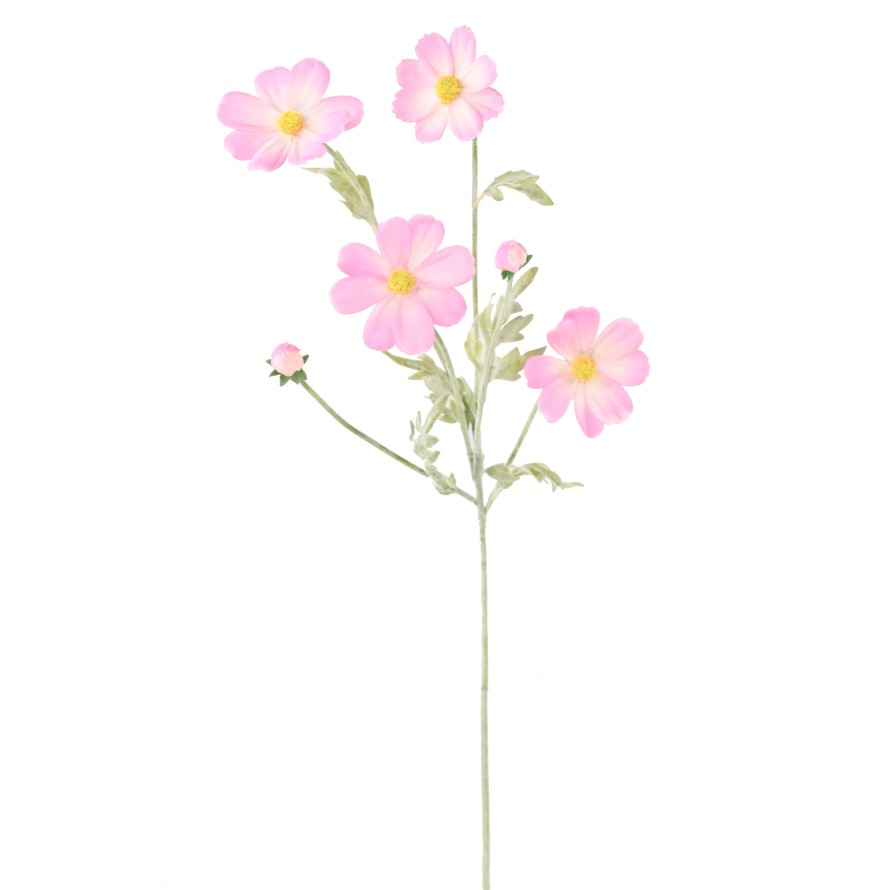 COSMOS 62 Artificiel, composé de 4 fleurs de diamètre 5 à 7 cm, 2 boutons et 6 feuilles, tige armée de 29 cm.