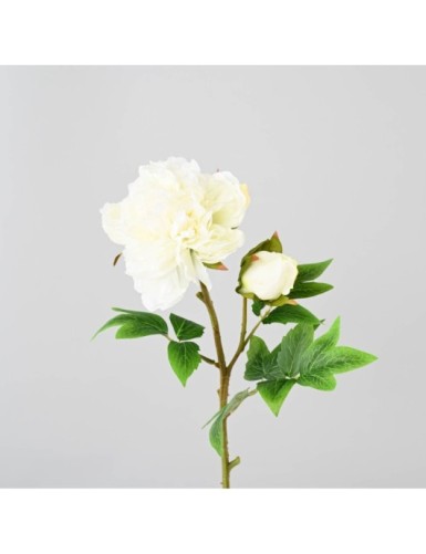 PIVOINE Artificielle, composée d'une fleur de diamètre 14cm et d'un bouton de largeur 6cm et 11 feuilles de tailles différentes, une tige armée de 25cm.