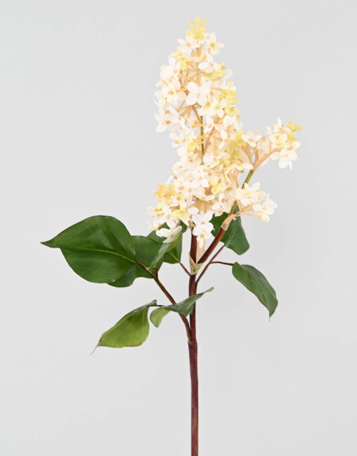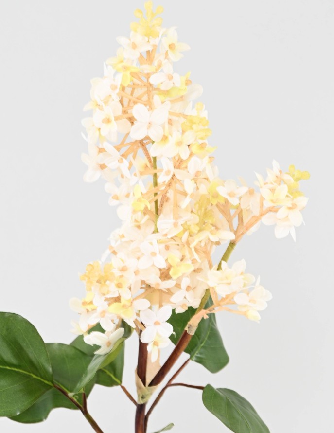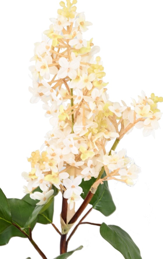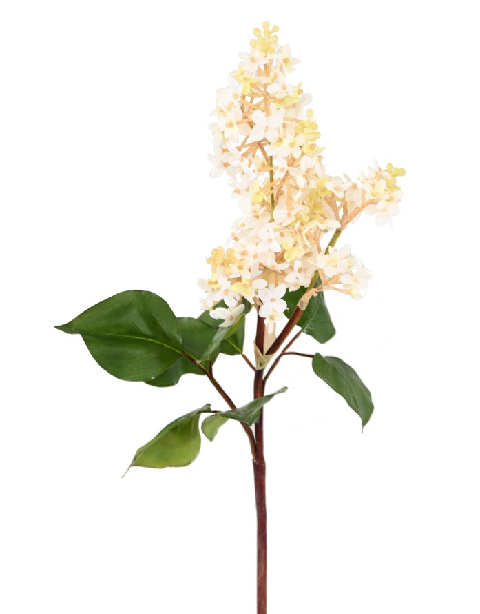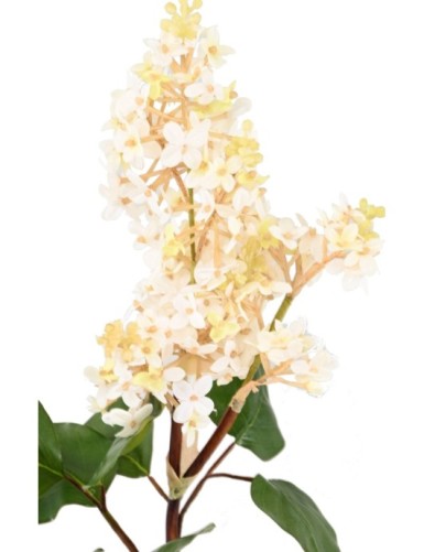 LILAS 82 Artificiel, avec une tige armée de 53cm comprenant 2 têtes : la plus grande mesurant 20cm et la plus petite 12cm et 8 feuilles.