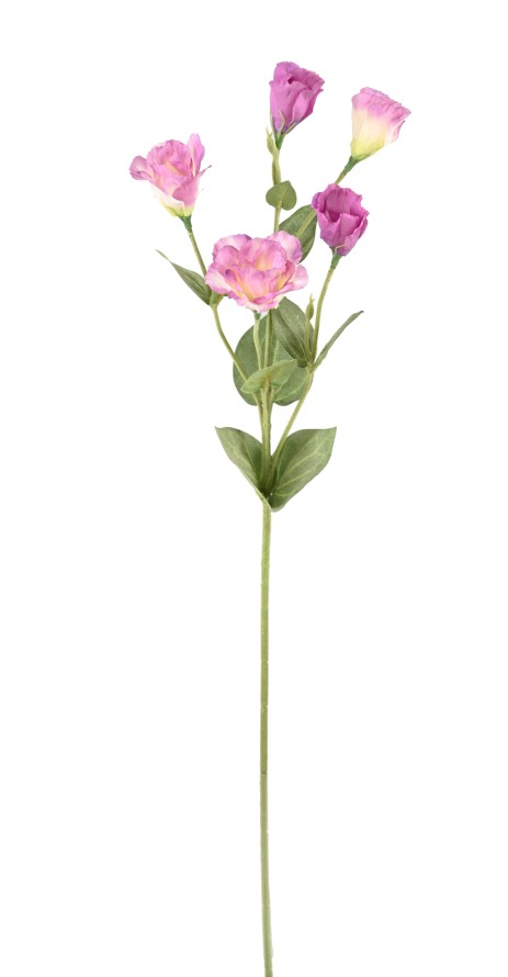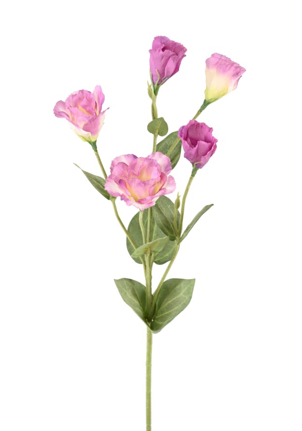 LISIANTHUS 76 Artificiel, avec une tige armée de 43 cm, composé de 5 fleurs, et 9 feuilles de tailles différentes.
