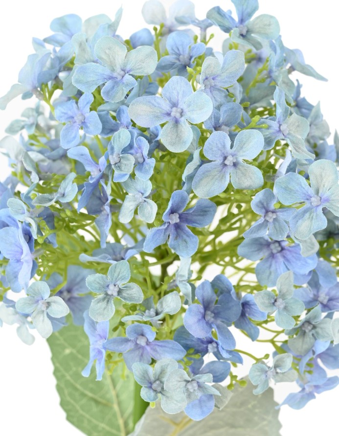 La plante artificielle Hortensia mesure 30 cm de hauteur et est ornée de fleurs avec plusieurs nuances de bleues en tergal. Les fleurs artificielles offrent de nombreux avantages : aucun entretien, pas d\'allergies, longue durée de vie et possibilités infinies en termes de décoration florale. Elles sont parfaites pour créer facilement des arrangements floraux luxuriants et élégants pour embellir votre intérieur ou pour des occasions spéciales telles que les mariages, les baptêmes ou les anniversaires.