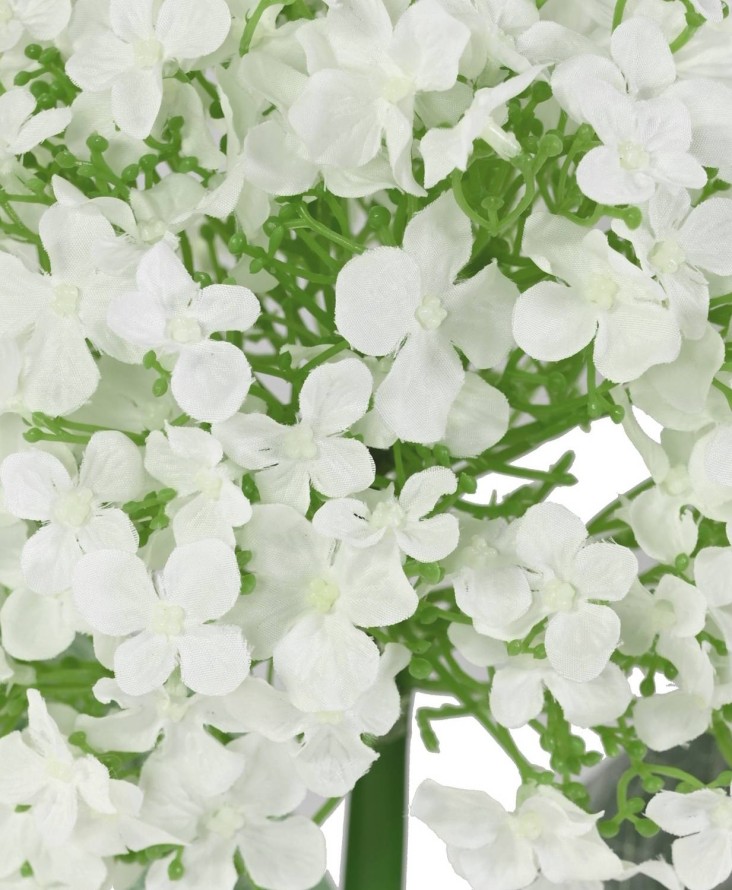 La plante artificielle Hortensia mesure 30 cm de hauteur et est ornée de fleurs blanches en tergal. Les fleurs artificielles offrent de nombreux avantages : aucun entretien, pas d'allergies, longue durée de vie et possibilités infinies en termes de décoration florale. Elles sont parfaites pour créer facilement des arrangements floraux luxuriants et élégants pour embellir votre intérieur ou pour des occasions spéciales telles que les mariages, les baptêmes ou les anniversaires.