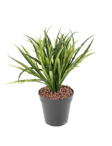 ONION GRASS BAMBOU artificiel, graminée feuillage en PE, avec un pot de base diam 15 cm hauteur 13 cm.