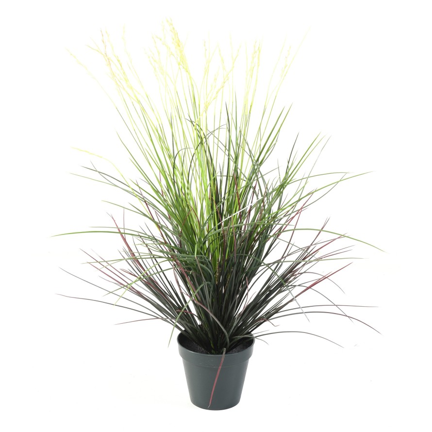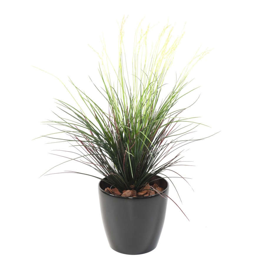GRAMINEE TOUFFE NEW Artificielle, tricolore composée de 42 fleurs, à la base un pot de diamètre 18 cm et hauteur 14 cm (un seul piquet). Le pot d’origine doit être percé pour permettre à l’eau de s’évacuer. Il doit être fixé au bac décoratif en créant un drainage pour éviter toute stagnation de l’eau au pied de la plante. Convient pour l'extérieur. Garantie résistance aux UV : 2000 heures (heures d’ensoleillement) soit environ 2 ans.