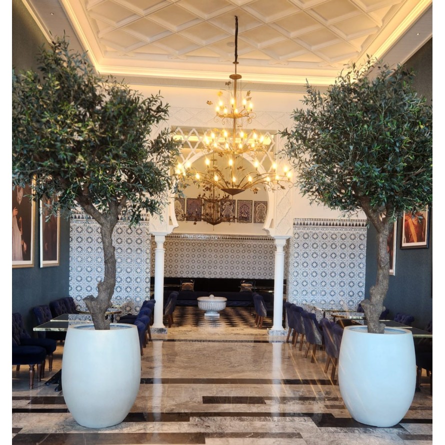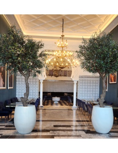 Olivier New  Géant Artificiel / Tronc de diamètre 12cm/ Hauteur sous branche 60cm/ Pot de 19cm de diamètre, hauteur 14cm