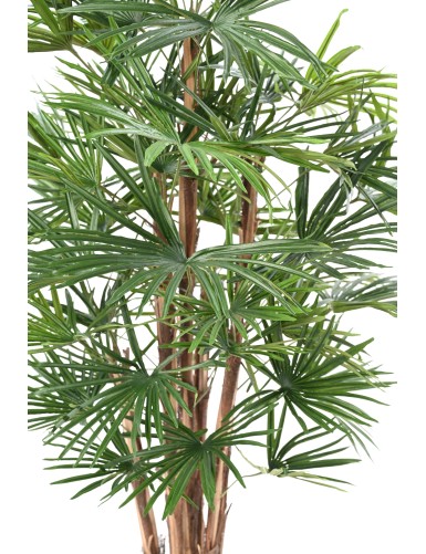 LICUALA GRANDIS Artificiel, composé de 10 feuilles de tailles différentes : 3 feuilles de 44 cm de longueur et 41 cm de largeur et 7 feuilles de 38 cm de longueur et 37 cm de largeur. Un tronc naturel recouvert d'écorces et de la coco avec une hauteur de 20 cm. A la base un pot PVC de diamètre 15 cm et de hauteur 14 cm.