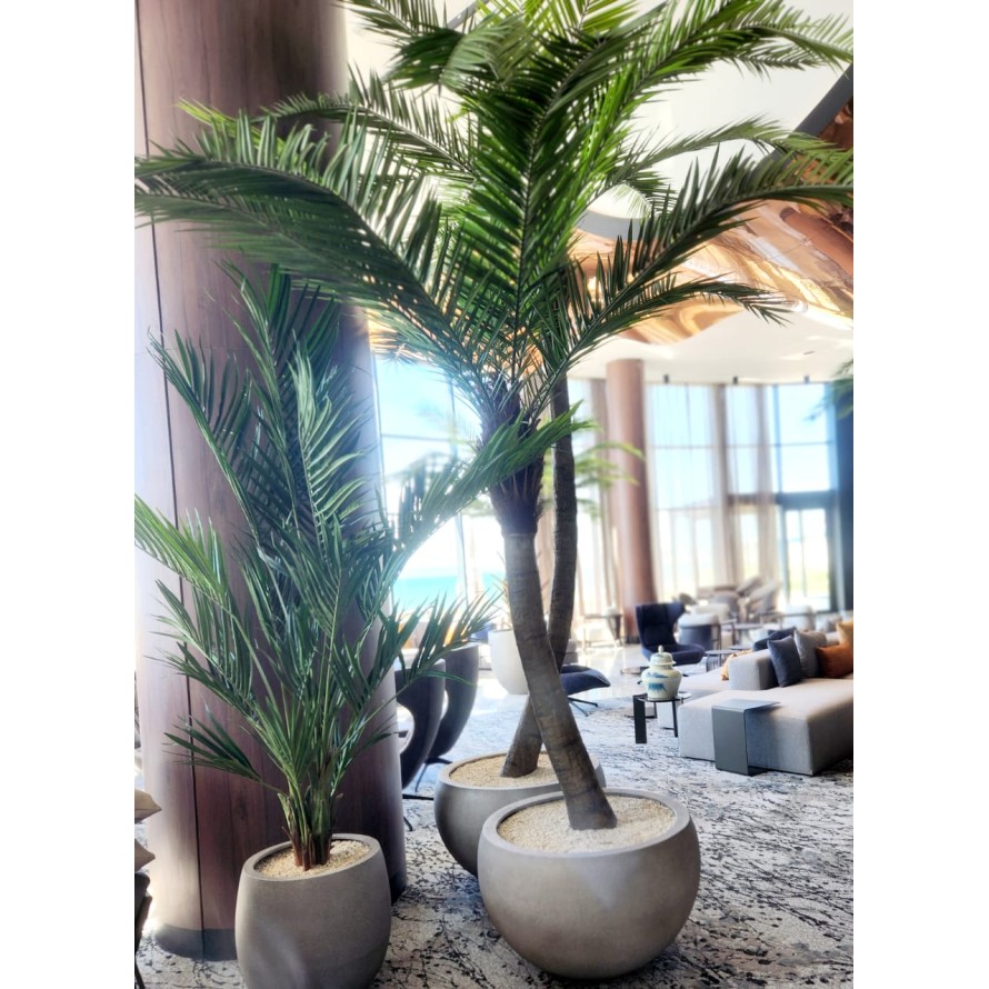 palmiers-musacees-tropiques-artificiels PALMIER COCO Palmier Coco Artificiel / 19palmes/1206 feuilles/ Tronc de 4m50/ 10Palmes/ Hauteur de tête 1m50/ Plaque de 61cm*61cm 18197-71 Hauteur : 700 cm