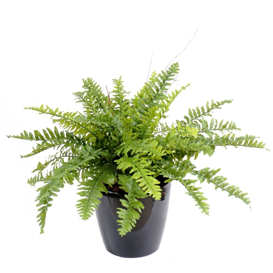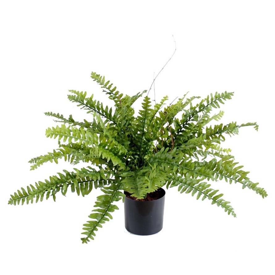 FOUGERE BOSTON *42 EN POT Artificielle, composée de 42 feuilles en tergal, avec à la base un pot PCV de diamètre 13cm et hauteur 12cm.