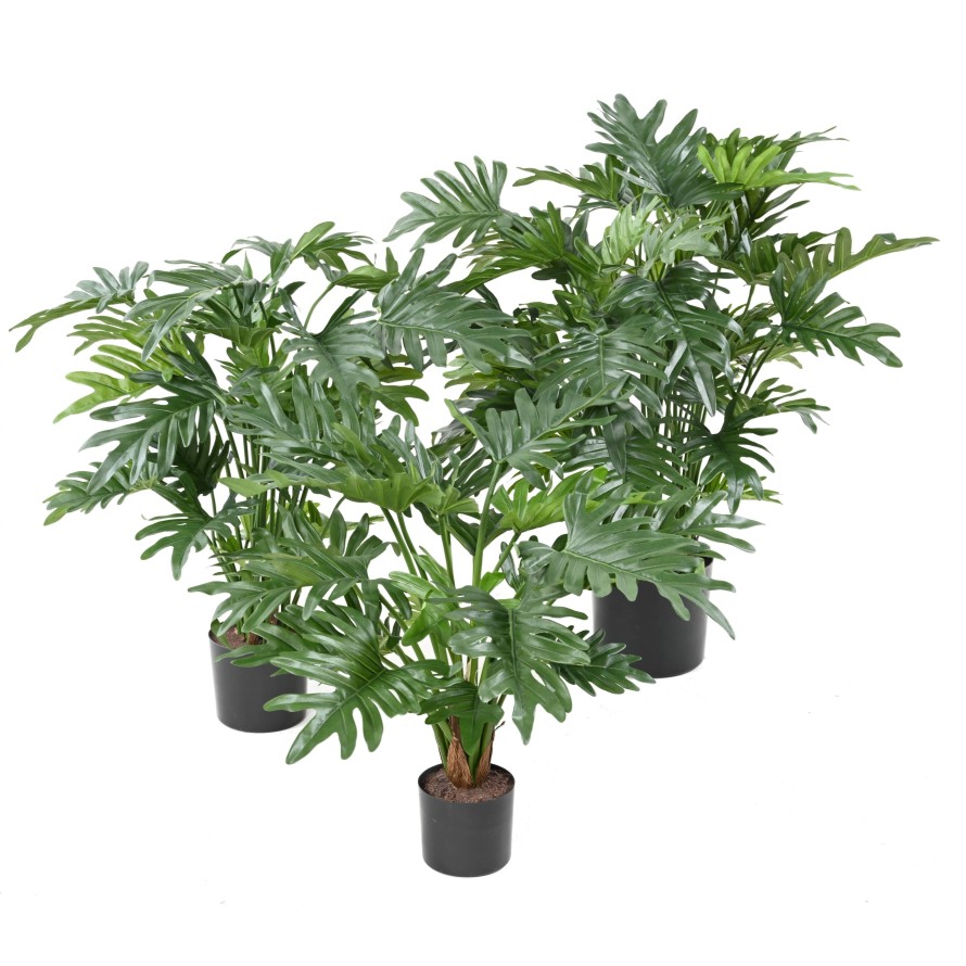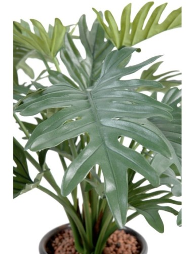 PHILODENDRON SELLOUM 50CM Artificiel, composé de 21 feuilles de diverses tailles, les plus petites mesurent 13,5 cm et les plus grandes 22,5 cm. A la base un pot PVC de diamètre 11 cm et hauteur 9,5 cm.
