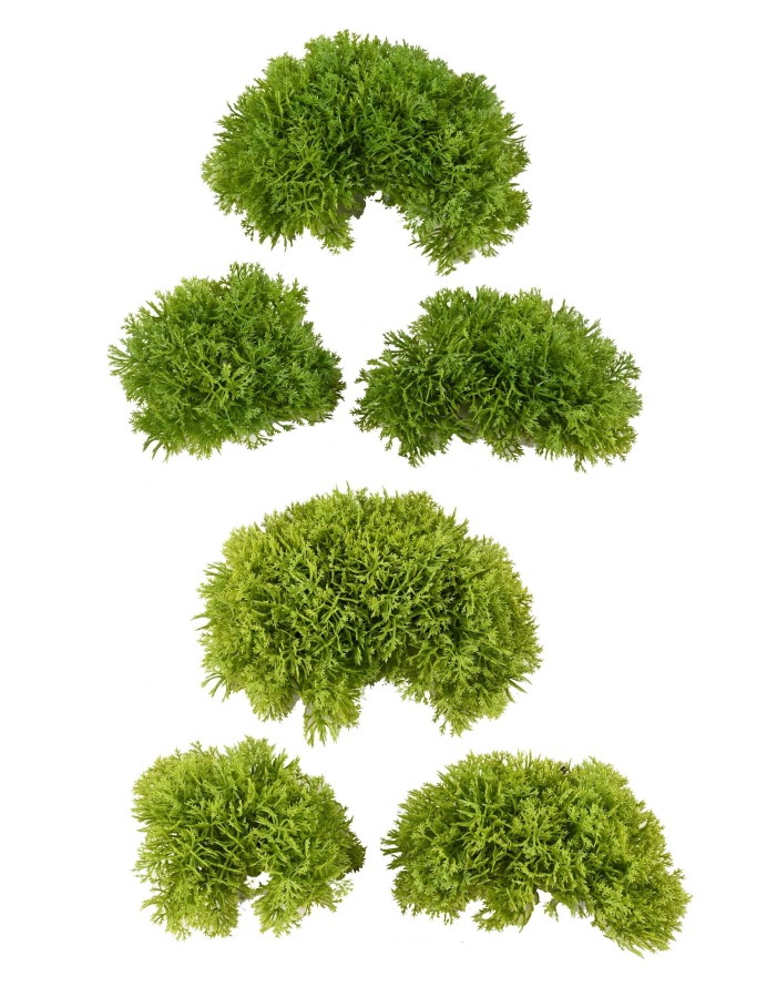 MOUSSE GALET *3 PE Artificielle, composée de 3 galets de tailles différentes. Le plus petit a les dimensions suivantes : 9 cm de longueur, 7 cm de largeur et 3 cm de hauteur, le moyen : 13 cm de longueur, 8 cm de largeur et 3 cm de hauteur et le plus grand : 15 cm de longueur, 10 cm de largeur et 3 cm de hauteur.