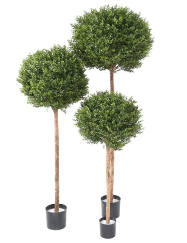 BUIS RED DAY TIGE BOULE 110 UV Artificiel, en PE de diamètre 50cm, tronc en bois. L'essence utilisée pour le tronc est le Theaceae. A la base un pot PVC de diamètre 12cm et de hauteur 11cm. Le pot d’origine doit être percé pour permettre à l’eau de s’évacuer. Il doit être fixé au bac décoratif en créant un drainage pour éviter toute stagnation de l’eau au pied de la plante. Convient pour l'extérieur. Garantie résistance aux UV : 2000 heures (heures d’ensoleillement) soit environ 2 ans.