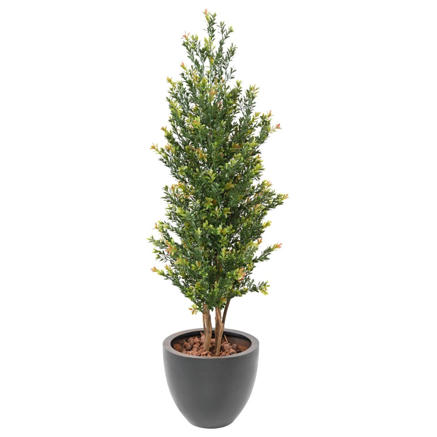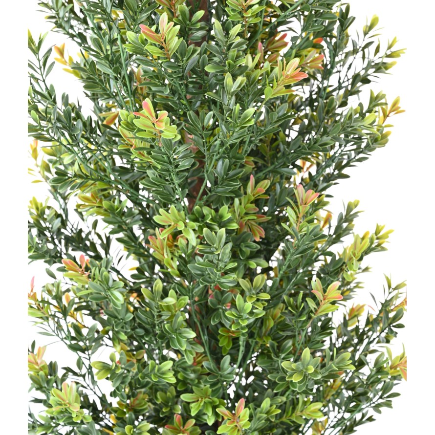 Les hauteurs de notre buis red day sont désormais de 100, 130 et 165 cm. Les produits sont toujours résistants aux UV et aux intempéries. Le feuillage de cet arbre semi-naturel est principalement vert, avec des tons orangés et rouges qui lui donnent de la profondeur.