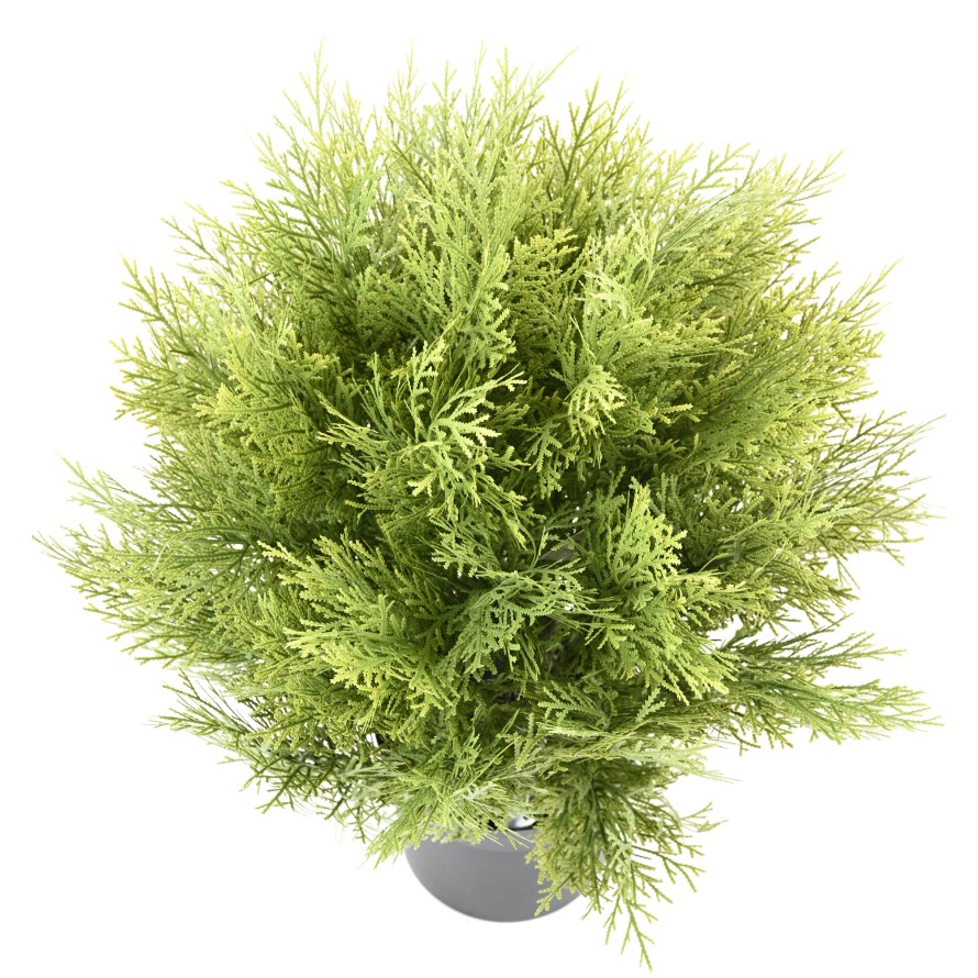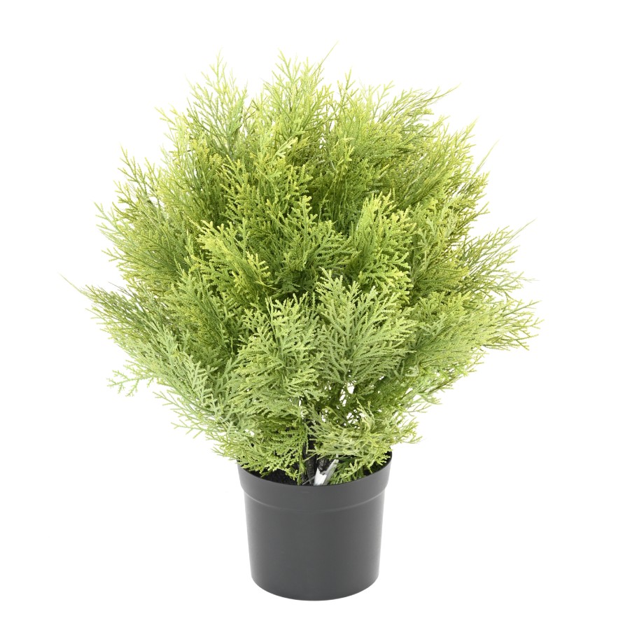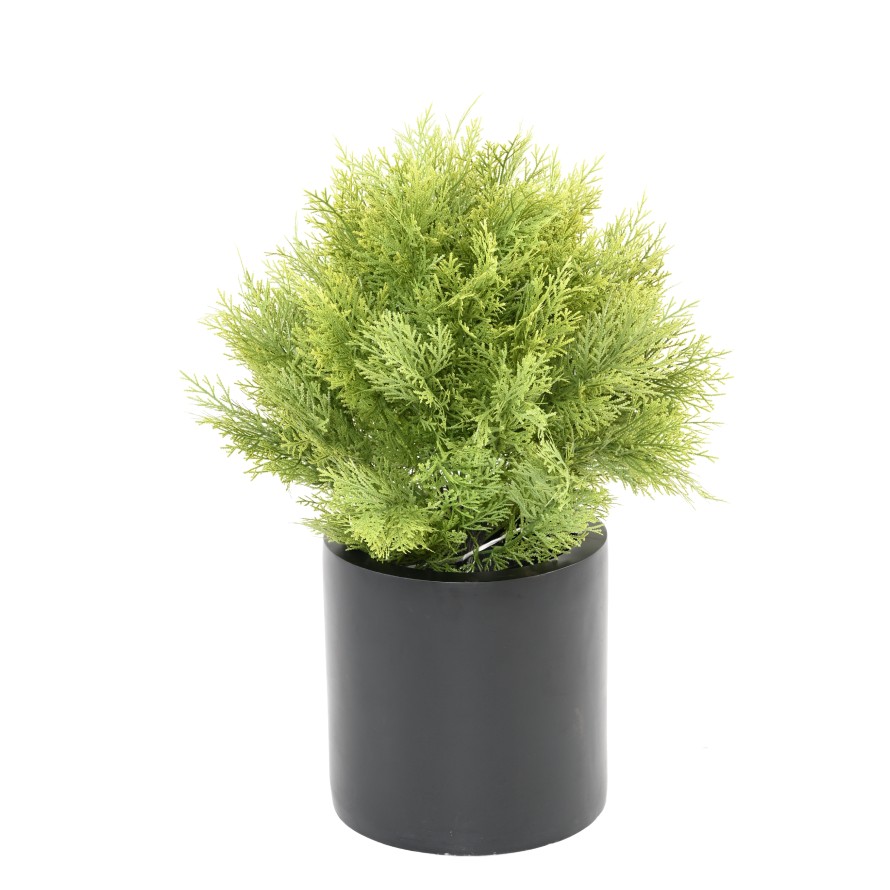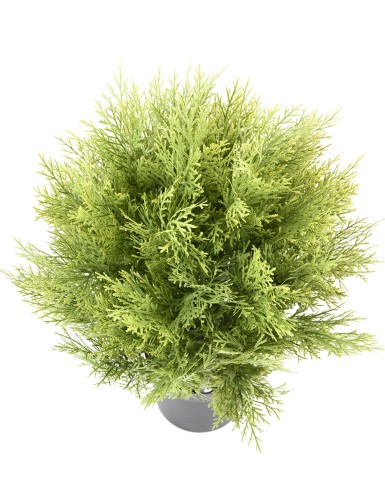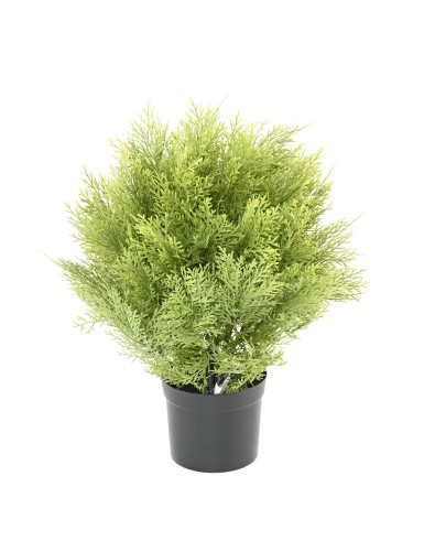 CYPRES ROND 45 Artificiel, avec une envergure de 45 cm, à la base un pot PVC de diamètre 17 cm et de hauteur 15 cm. Le pot dorigine doit être percé pour permettre à leau de sévacuer. Il doit être fixé au bac décoratif en créant un drainage pour éviter toute stagnation de leau au pied de la plante. Convient pour l'extérieur. Garantie résistance aux UV : 2000 heures (heures densoleillement) soit environ 2 ans.